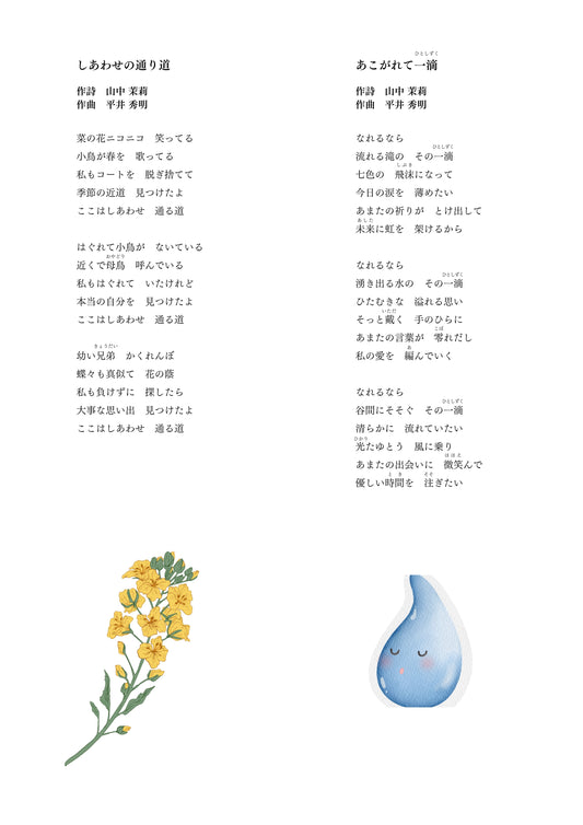 【楽譜】『しあわせの通り道』『あこがれて一滴』 (山中茉莉 作詩/平井秀明 作曲)★新刊楽譜!
