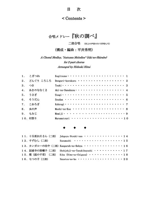 【楽譜】『秋のコーラス曲集』(メロディー譜)